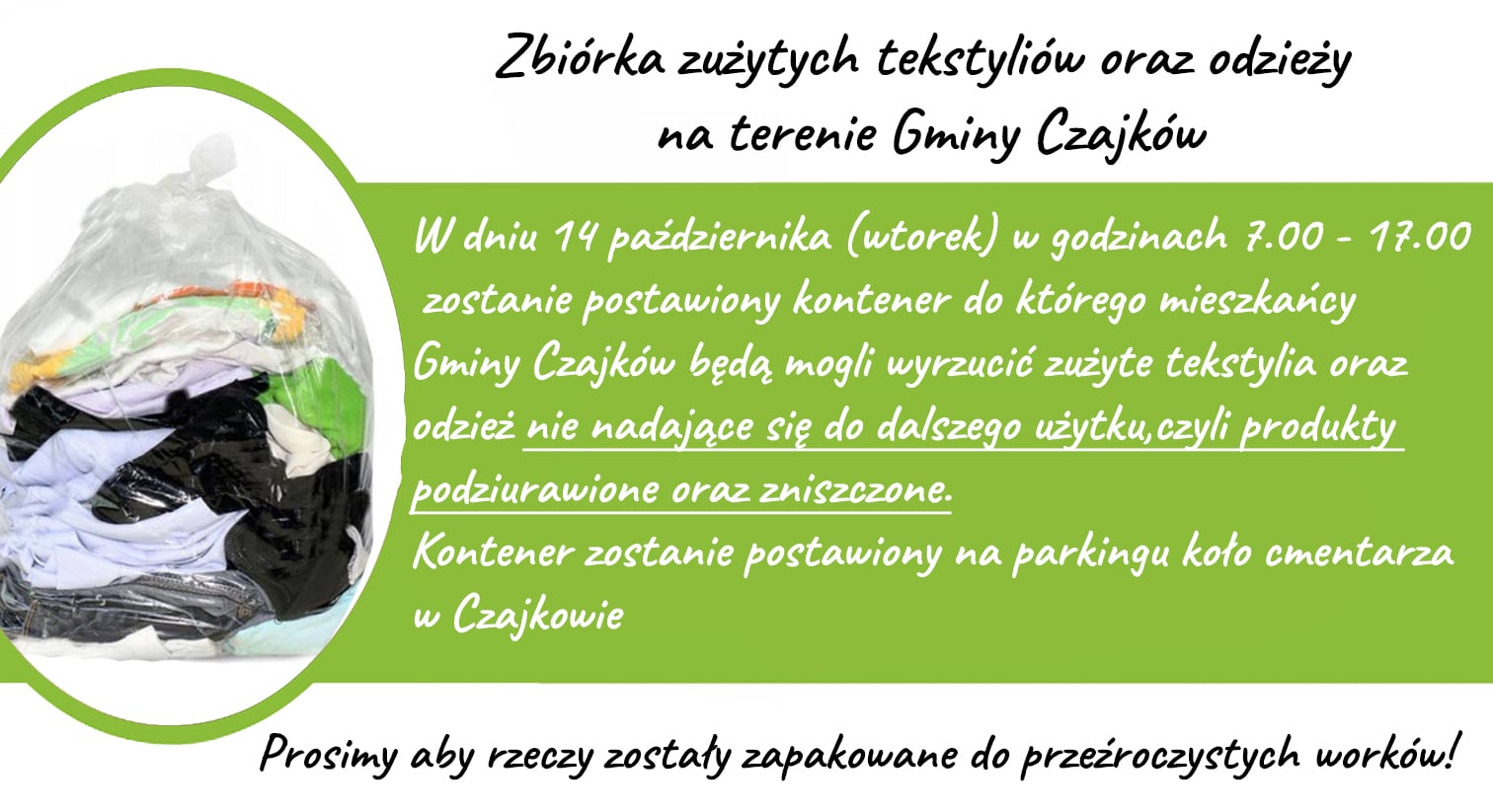 Zbiórka tekstyliów oraz odzieży na terenie Gminy Czajków
