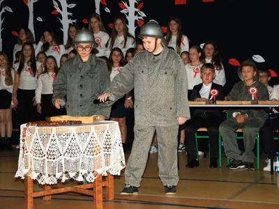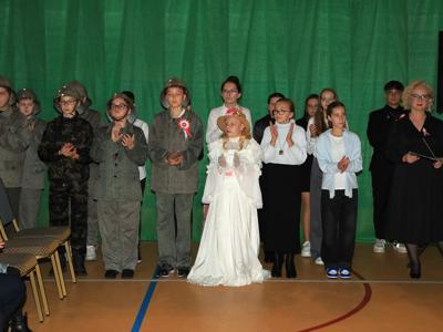Kolejna część uroczystości odbyła się w Szkole Podstawowej im. Janusza Korczaka w Czajkowie. Uczniowie klasy VI przygotowali wzruszającą wieczornicę patriotyczną, przypominającą dzieje walki o niepodległość. Występ uświetnił szkolny chór oraz zespół instrumentalny pod kierownictwem Pani Izabeli Tomali.